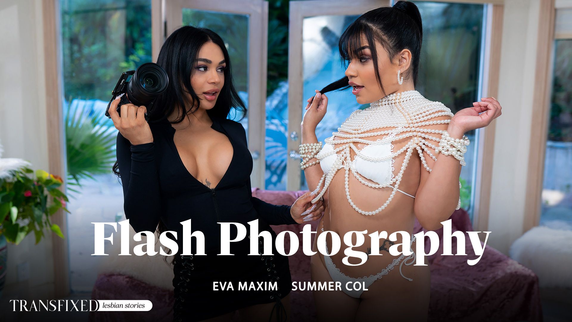 Once the first set of photos is done, Summer changes into the next outfit, which consists of a different set of jewelry, a thong that's nearly invisible, and NO bra. Now that Summer is almost completely nude except for the glittering jewels, the mood becomes even more intimate and sensual, especially whenever Eva has to touch Summer again to readjust the jewelry.